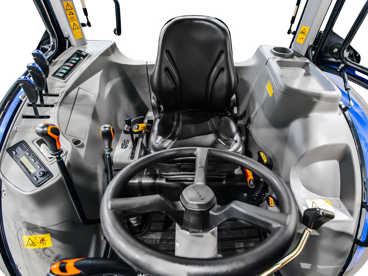 Кабина снабжена каркасом безопасности (ROPS), имеет круговой обзор с рабочего места оператора без «мертвых зон». По степени комфорта кабина трактора не уступает салону автомобиля среднего класса: сиденье Grammer, кондиционер, магнитола, стереосистема, система фильтрации подаваемого воздуха, качественная отделка, защита от вибраций, шума, пыли, попадания влаги, а также многие другие приятные для механизатора опции находятся в базовой комплектации трактора. Расположение органов управления продумано с позиций эргономики. Мощное рабочее освещение обеспечивает хорошую видимость.