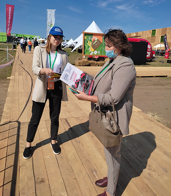 На фото: участники выставки «УралАгро», прошедшей в апреле 2022 года в Екатеринбурге, знакомятся с платформой Skillagro.
