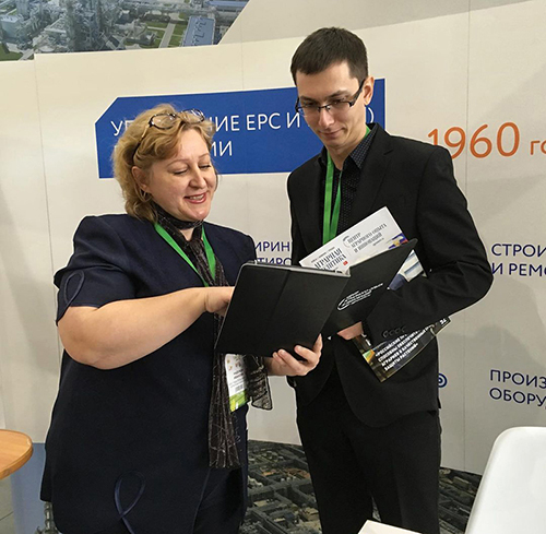 На фото: менеджер проектов Дарья Долженко общается с одним из участников выставки в Оренбурге, 2018 год.