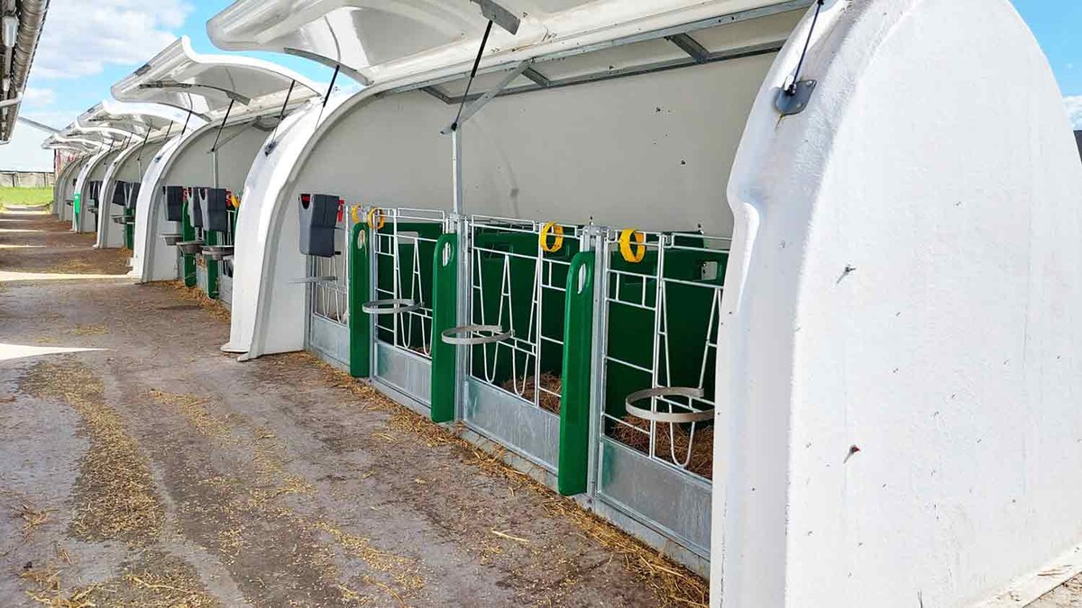 Также уникальностью является то, что домики, сделанные из полиэстера, укрепленного стекловолокном, очень прочные, не деформируются ни в жару, ни в холод, ремонтопригодные, в отличие от пластика. Имеют совершенно гладкое покрытие, которое легко мыть. Верхний слой отражает солнечный свет, что позволяет теленку находиться в теневой температуре даже при жаре.