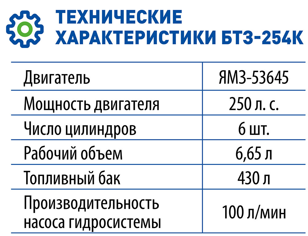 Новая модель трактора БТЗ‑254К была представлена аграриям в 2022 году. Трактор оснащен современным рядным 6-циллиндровым двигателем ЯМЗ мощностью 250 л. с.