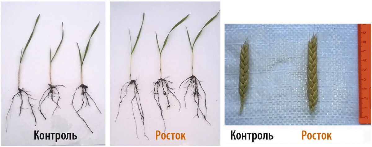 — Препарат Росток регулирует рост и развитие растений, стимулирует физиологические процессы. Он повышает энергию прорастания и всхожесть, густоту стояния растений и число продуктивных стеблей, улучшает развитие корневой системы и колоса. Росток также повышает фертильность пыльцы и увеличивает размеры жизнеспособных клеток, что способствует лучшей опыляемости растений, оплодотворяемости гамет и формированию полноценного урожая. Препарат ускоряет прохождение фенологических фаз, увеличивает использование питательных веществ, повышает содержание клейковины, белка, углеводов, сахаров, витаминов. Росток снижает содержание нитратов, токсикантов в продукции и негативное действие стрессов (обработка пестицидами, засуха, заморозки), повышает устойчивость к заболеваниям и действию неблагоприятных факторов, усиливает неспецифический иммунитет.